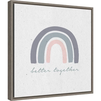 - CUSTOM CANVAS ARTWORK DETAILS: Better Together I by Wild Apple Portfolio. DESCRIPTION: A sweet message is perfectly paired with a rainbow, the ultimate beacon of positivity and luck. Three simple swipes of pastel-hued colors come together to form the image in shades of gray, green and pink. The uplifting, cursive-written missive underneath serves as a reminder that we’re all in this together. ARTIST BIO: Wild Apple Portfolio/Photography showcases the collaborative efforts of our designers and art directors. Using found objects, documents, photography, and vintage art, the work of our studio addresses current design trends.