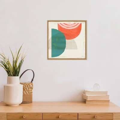 ART DESCRIPTION: Fill in the missing pieces to find your favorite interpretation of this abstract painting. Contrasting hemispheres scoop around this painting, each with a slightly different texture from fabric-printed to blotchy painted stripes in coral, teal and pink. This Amanti Art canvas art print was created by Tom Reeves and printed by Amanti Art in Madison WI. The canvas is stretched by hand and finished with a float frame. Individually made using traditional custom framing techniques, it has the quality you would expect from your local frame shop. Because of our attention to detail and focus on artistry, architects, interior designers, and homeowners alike choose this framed canvas artwork to create beautiful living spaces.