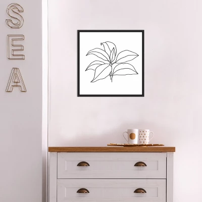 ART DESCRIPTION: Large leaves opening up are rendered in a black line art style are the feature of this painting. Set on a clean, white background, the leaves are an outline in this simple, square, minimalist piece. This Amanti Art canvas art print was created by Annie Warren and printed by Amanti Art in Madison WI. The canvas is stretched by hand and finished with a float frame. Individually made using traditional custom framing techniques, it has the quality you would expect from your local frame shop. Because of our attention to detail and focus on artistry, architects, interior designers, and homeowners alike choose this framed canvas artwork to create beautiful living spaces.