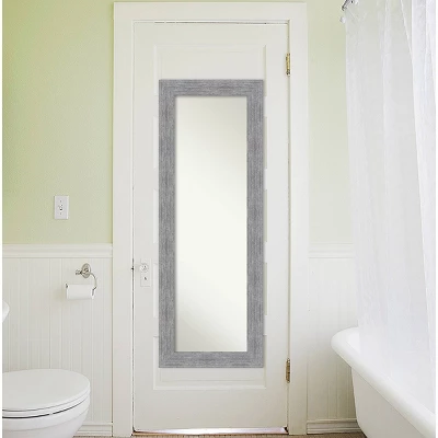 This full-length Non-Beveled Mirror framed in the Bark Rustic Gray frame, complements your decor without the need for unsightly over-the-door brackets. Individually made using traditional custom framing techniques, it has the quality you would expect from your local frame shop. It holds its value with premium finishing that can be appreciated up close. Our On The Door Mirror has two hooks to hang directly on your door or wall without additional anchors or brackets. Hang it on the back of a closet, bedroom or bathroom door, or wall as a standard full-length mirror. Because of our attention to detail and focus on artistry, architects, interior designers, and homeowners alike choose this mirror to create beautiful living spaces.