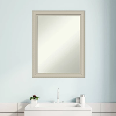 - MIRROR DETAILS: This mirror features premium glass for a clear, undistorted image and has a non-beveled surface to maximize the viewing area. The overall size of this bathroom mirror measures 21.75 x 27.75 inches, including the frame. Its reflective area measures 18 x 24 inches.