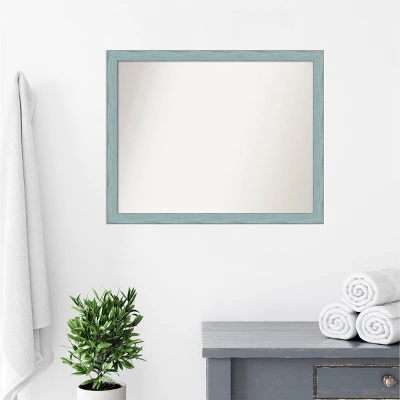 Give your bathroom the finishing touch with this 100% real wood Non-Beveled Wall Mirror framed with the Sky Blue Rustic frame. Individually made using traditional custom framing techniques, it has the quality you would expect from your local frame shop. It holds its value with premium finishing that can be appreciated up close. Because of our attention to detail and focus on artistry, architects, interior designers, and homeowners alike choose this mirror to create beautiful living spaces.