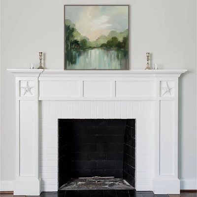ART DESCRIPTION: A cool breeze wafts over this private lake, rippling the water and jostling the reflections of dozens of trees. Overhead, fluffy clouds play in beams of sunlight, bringing warmth and inviting you to wade into the water. This Amanti Art canvas art print was created by Silvia Vassileva and printed by Amanti Art in Madison WI. The canvas is stretched by hand and finished with a float frame. Individually made using traditional custom framing techniques, it has the quality you would expect from your local frame shop. Because of our attention to detail and focus on artistry, architects, interior designers, and homeowners alike choose this framed canvas artwork to create beautiful living spaces.