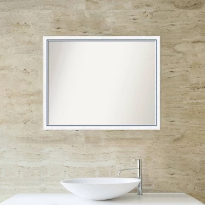 Give your bathroom the finishing touch with this 100% real wood Non-Beveled Wall Mirror framed with the Morgan White Blue frame. Individually made using traditional custom framing techniques, it has the quality you would expect from your local frame shop. It holds its value with premium finishing that can be appreciated up close. Because of our attention to detail and focus on artistry, architects, interior designers, and homeowners alike choose this mirror to create beautiful living spaces.