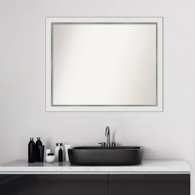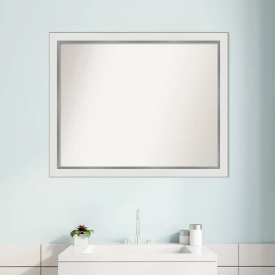 Give your bathroom the finishing touch with this Non-Beveled Wall Mirror framed with the Eva White Silver Narrow frame. Individually made using traditional custom framing techniques, it has the quality you would expect from your local frame shop. It holds its value with premium finishing that can be appreciated up close. Because of our attention to detail and focus on artistry, architects, interior designers, and homeowners alike choose this mirror to create beautiful living spaces.