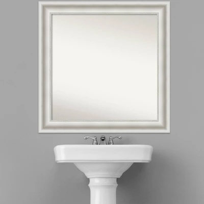 - MIRROR DETAILS: This mirror features premium glass for a clear, undistorted image and has a non-beveled surface to maximize the viewing area. The overall size of this bathroom mirror measures 31.5 x 31.5 inches, including the frame. Its reflective area measures 26 x 26 inches.