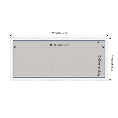 - DIMENSIONS: The overall size of this framed corkboard measures 32 in. x 14 in., including the frame. Its functional cork board area measures 30 in. x 12 in.
