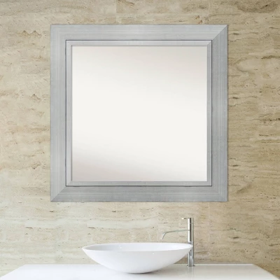 - MIRROR DETAILS: This mirror features premium glass for a clear, undistorted image and has a non-beveled surface to maximize the viewing area. The overall size of this bathroom mirror measures 33.25 x 33.25 inches, including the frame. Its reflective area measures 26 x 26 inches.