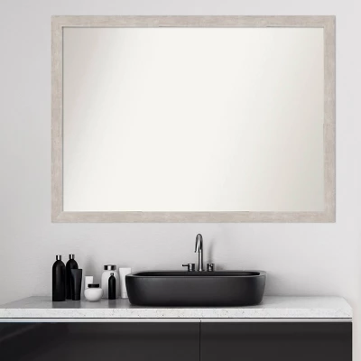 Give your bathroom the finishing touch with this 100% real wood Non-Beveled Wall Mirror framed with the Marred Silver frame. Individually made using traditional custom framing techniques, it has the quality you would expect from your local frame shop. It holds its value with premium finishing that can be appreciated up close. Because of our attention to detail and focus on artistry, architects, interior designers, and homeowners alike choose this mirror to create beautiful living spaces.