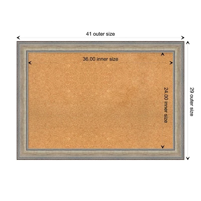 - DIMENSIONS: The overall size of this framed corkboard measures 41 in. x 29 in., including the frame. Its functional cork board area measures 36 in. x 24 in.