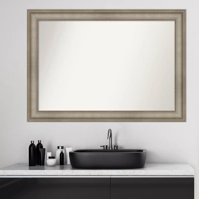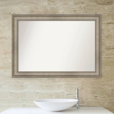 Give your bathroom the finishing touch with this 100% real wood Non-Beveled Wall Mirror framed with the Mezzanine Antique Silver Narrow frame. Individually made using traditional custom framing techniques, it has the quality you would expect from your local frame shop. It holds its value with premium finishing that can be appreciated up close. Because of our attention to detail and focus on artistry, architects, interior designers, and homeowners alike choose this mirror to create beautiful living spaces.