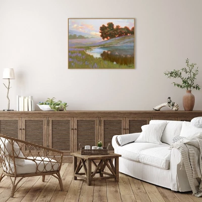 ART DESCRIPTION: The painting captures the delicate beauty of a lupin flower field in soft pastel hues. The intricate details and subtle shading create a sense of depth and dimension, inviting the viewer to get lost in the beauty of nature. This Amanti Art canvas art print was created by Ed Penniman and printed by Amanti Art in Madison WI. The canvas is stretched by hand and finished with a float frame. Individually made using traditional custom framing techniques, it has the quality you would expect from your local frame shop. Because of our attention to detail and focus on artistry, architects, interior designers, and homeowners alike choose this framed canvas artwork to create beautiful living spaces.