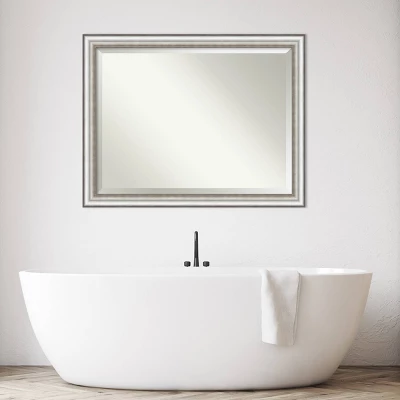 Give your bathroom the finishing touch with this Beveled Wall Mirror framed with the Salon Silver frame. Individually made using traditional custom framing techniques, it has the quality you would expect from your local frame shop. It holds its value with premium finishing that can be appreciated up close. Because of our attention to detail and focus on artistry, architects, interior designers, and homeowners alike choose this mirror to create beautiful living spaces.