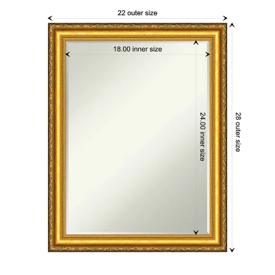 Give your bathroom the finishing touch with this 100% real wood Petite Bevel bathroom mirror. The Colonial Embossed Gold frame is a mottled gold frame with antique tan patina on embossed edges. The outer edge has an embossed flower design that curves to a beaded inner edge.. The frame is 2 in. wide and stands 1.25 in. off the wall. It’s Individually made using traditional custom framing techniques, it has the quality you expect from your local frame shop. It holds its value with premium finishing that can be appreciated up close. Because of our attention to detail and focus on artistry, architects, interior designers, and homeowners alike choose this mirror to create beautiful living spaces.