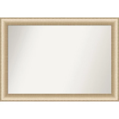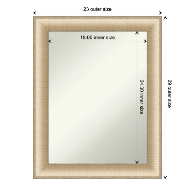 Give your home or office the finishing touch with this Non-Beveled Bathroom Mirror framed with the Elegant Brushed Honey frame. The Elegant Brushed Honey frame is a warm, honey gold and brushed metallic frame with satin finish that angles from outer to inner edge. Outer edge has slight swoop with black satin finish. The frame is 2.75 in. wide and stands 1.25 in. off the wall.Individually made using traditional custom framing techniques, it has the quality you would expect from your local frame shop. It holds its value with premium finishing that can be appreciated up close.