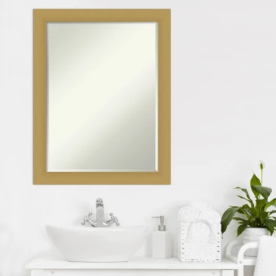 Give your bathroom the finishing touch with this Petite Bevel bathroom mirror. The Grace Brushed Gold frame is a brushed gold frame with a flat surface and smooth matte finish. The frame is 2 in. wide and stands 0.75 in. off the wall. It’s Individually made using traditional custom framing techniques, it has the quality you expect from your local frame shop. It holds its value with premium finishing that can be appreciated up close. Because of our attention to detail and focus on artistry, architects, interior designers, and homeowners alike choose this mirror to create beautiful living spaces.