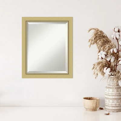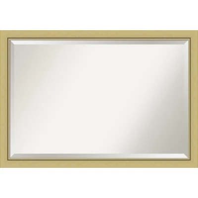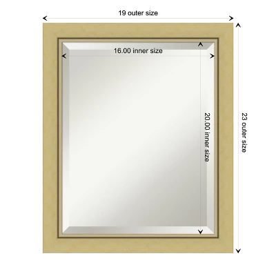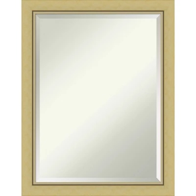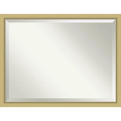 Give your home or office the finishing touch with this Beveled Bathroom Mirror framed with the Landon Gold Narrow frame. The Landon Gold Narrow frame is a two-toned gold frame featuring a mottled, matte gold outer surface and polished gold curved inner lip with fine lines. The outside edge is dark brown. The frame is 2 in. wide and stands 0.75 in. off the wall.Individually made using traditional custom framing techniques, it has the quality you would expect from your local frame shop. It holds its value with premium finishing that can be appreciated up close.