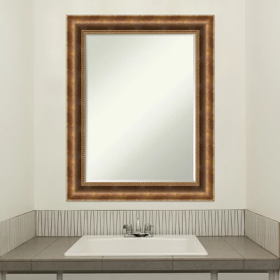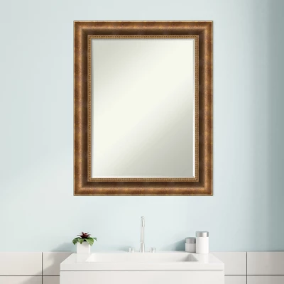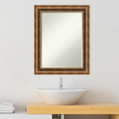 Give your bathroom the finishing touch with this 100% real wood Petite Bevel bathroom mirror. The Manhattan Bronze frame is a burnished bronze frame with a slightly lifted outer ridge and a wide face that curves to an inner golden beaded edge.. The frame is 3 in. wide and stands 1 in. off the wall. It’s Individually made using traditional custom framing techniques, it has the quality you expect from your local frame shop. It holds its value with premium finishing that can be appreciated up close. Because of our attention to detail and focus on artistry, architects, interior designers, and homeowners alike choose this mirror to create beautiful living spaces.