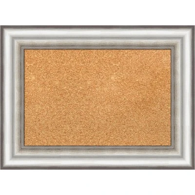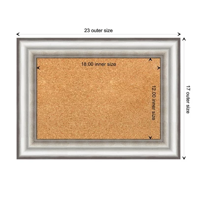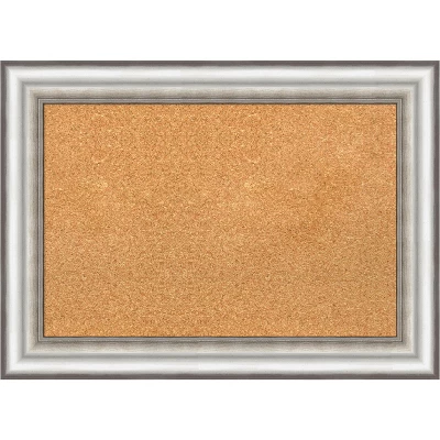 Turn everyday notes, reminders, and precious photos into a functional piece of art with the Amanti Art Cork Board. Perfect for a kitchen, entryway, or mudroom, this Natural corkboard features a Salon Silver frame which is a brushed silver frame with distinct dark lines and a finely embossed, dotted pattern over dark silver patina on the inner edge. The bulletin board uses a natural, renewable material that is thick enough to push pins fully into the board and stay in place. Pins are not included. Organize to-dos, notes, calendars, coupons, or artwork in your kitchen, entryway, mudroom, or laundry room. Individually made using traditional custom framing techniques, it has the quality you expect from your local frame shop. Because of our attention to detail and focus on artistry, architects, interior designers, and homeowners alike choose this corkboard to create beautiful living spaces.